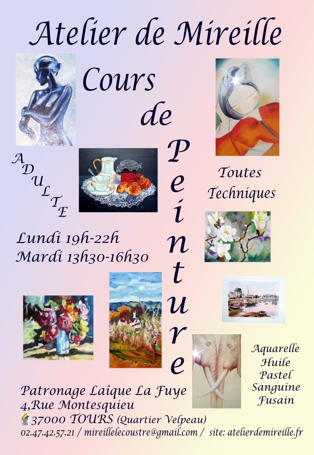 Le nombre d’élèves étant limité, merci de téléphoner à Mireille ou de la contacter par mail pour plus de renseignements ( 02 47 42 57 21 ou mireillelecoustre@gmail.com)